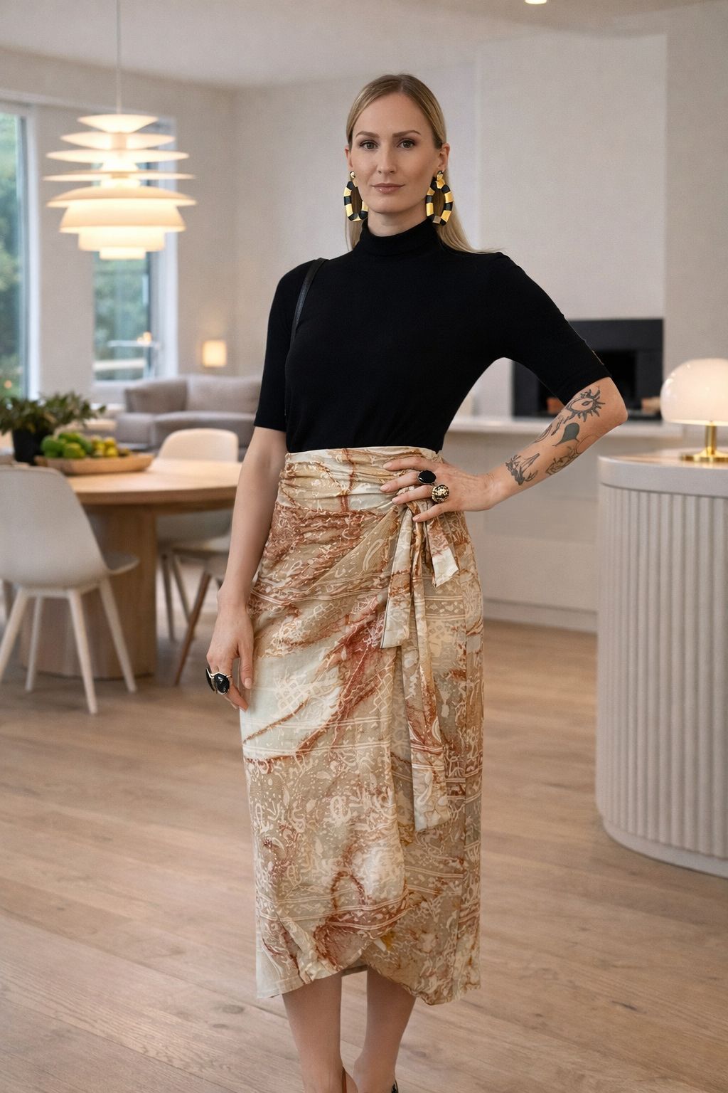 Boho blúzka na viazanie – srdcom variabilná Jemná, ženská a hravá – blúzka s tromi mašličkami a nadýchanými "puff" rukávmi, ktorú si zamiluješ pre jej variabilitu a boho dušu . Môžeš ju nosiť minimálne na tri rôzne spôsoby – elegantne previazanú vpredu, voľne prehodenú ako ľahké sako alebo romanticky zaviazanú vzadu. Stačí trošku zábavy a kreativity a každý kúsok sa zmení na viacero štýlových outfitov . (Pozri náš newsletter a nauč sa rôzne viazania krok za krokom.) Rozmery: Celková šírka blúzky: 55 cm x2 Celková dĺžka blúzky: 60 cm Dlžka rukávu: 60 cm Šírka rukávu: 30 cm x 2 Sedí na veľkosti XS až XL ♡ Boho sukňa na viazanie – zavinovacia kráska 4 v 1 Jeden kúsok, nekonečné možnosti. Naša zavinovacia sukňa je navrhnutá tak, aby sa prispôsobila tvojmu štýlu aj nálade. Môžete ju nosiť ako: klasickú zavinovaciu sukňu, previazanú tvarujúcu sukňu, plážovú šatku (pareo), ľahké letné šaty, alebo ako originálny top. Stačí pár uzlov a zakaždým vytvoríš iný outfit . (Pozri náš newsletter a nauč sa jednoduché viazania krok za krokom.) Maximálna šírka pásu : 110 cm Celková dĺžka: 90 cm Sedí na veľkosti : XS až XXL – pohodlný strih, ktorý objíme postavu, nie ju zviaže. ♡ Všetky naše produkty perte prosím v rukách, sušte voľne v tieni, na vzduchu a budú Vám slúžiť roky. Sú vysnívané na Slovensku a ušité v Indii. ♡