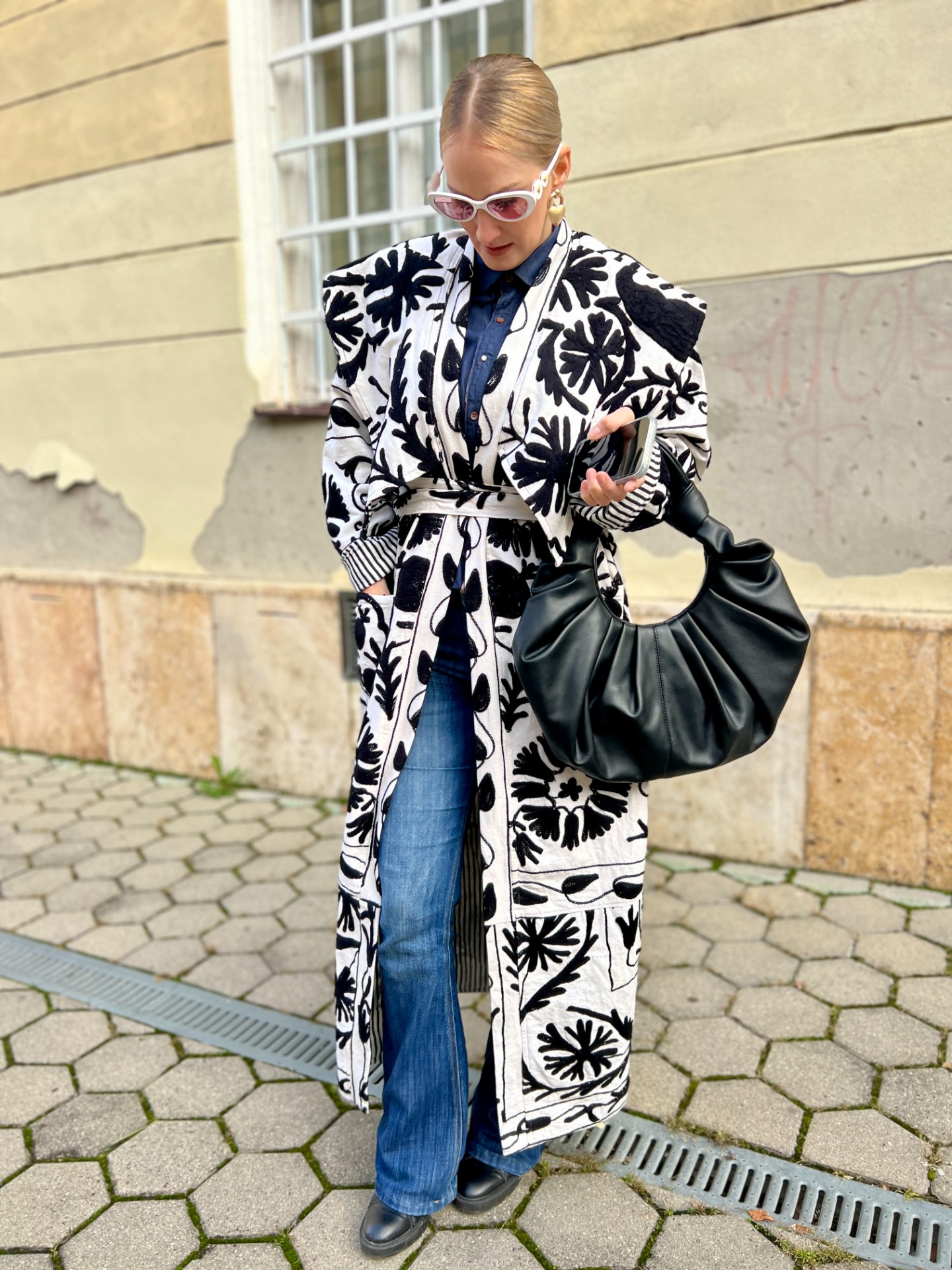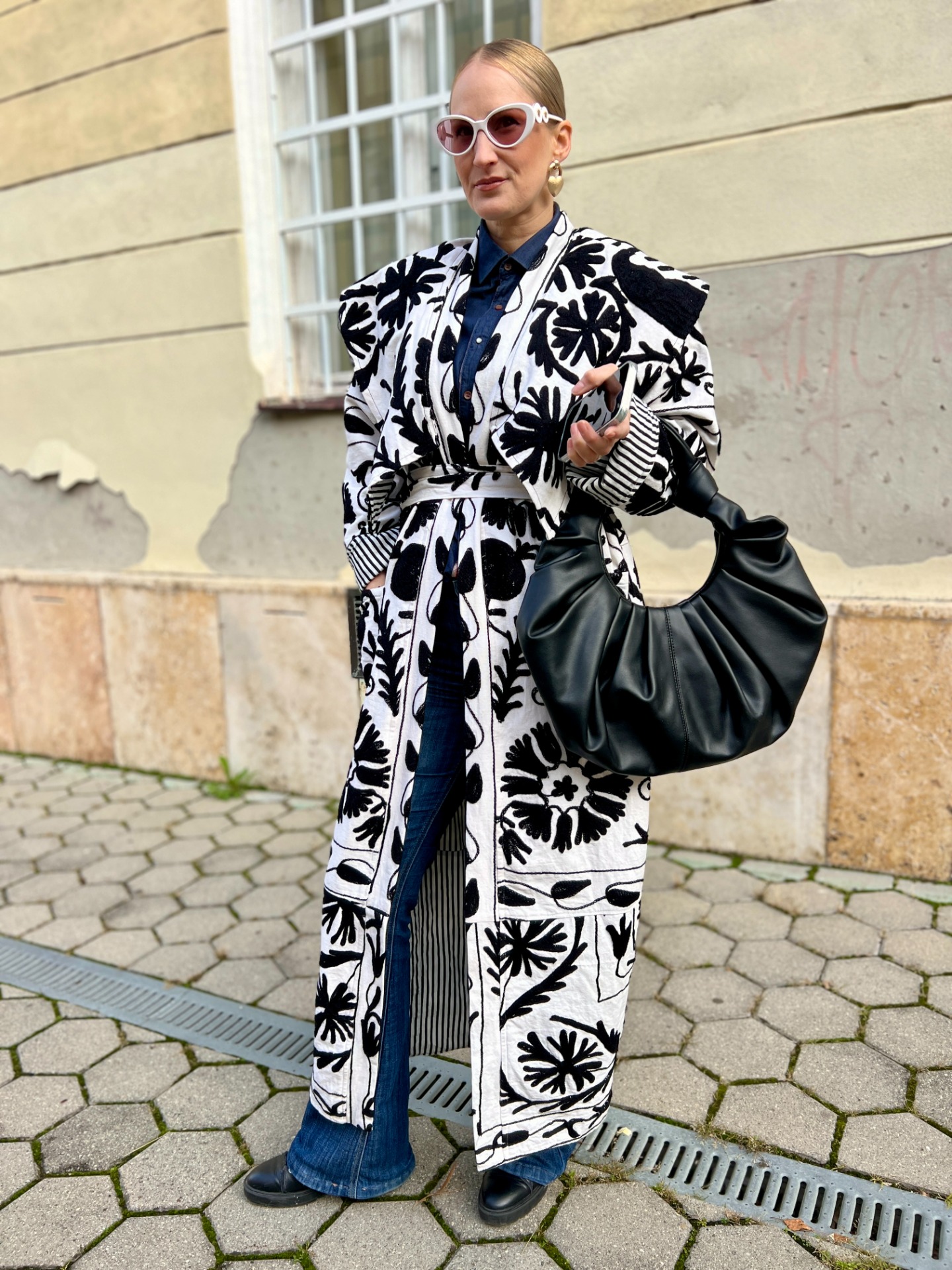 Tento kabátik bol dizajnovaný mnou na Slovensku, dokonalú dĺžku a golier mu dala moja drahá krajčírka, ktorá sa nebojí plniť moje nápady.
