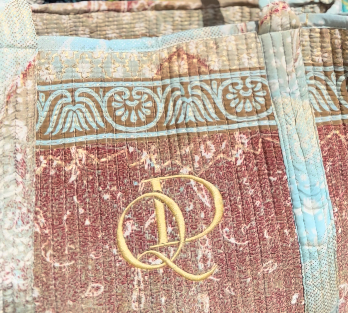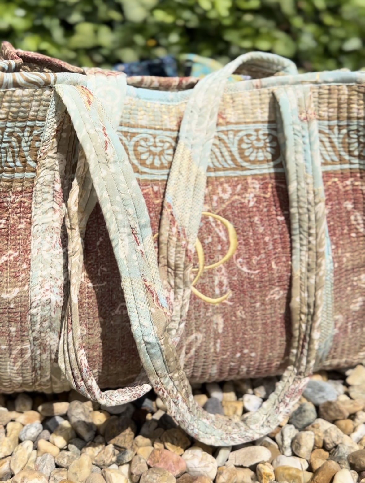 Taška je podľa mojich predstáv ušitá v Indii našimi krajčírmi a na Slovensku k nej dotvorená nádherná výšivka u milej krajčírky Zuzky. Logo, ktoré sme použili na našu prvú kolekciu sa mi veľmi páči a vzhľadom na Vaše spätné väzby, vnímam, že aj vy ste viac ako spokojné QD - Queen Dharma, kráľovná pozitívnej karmy